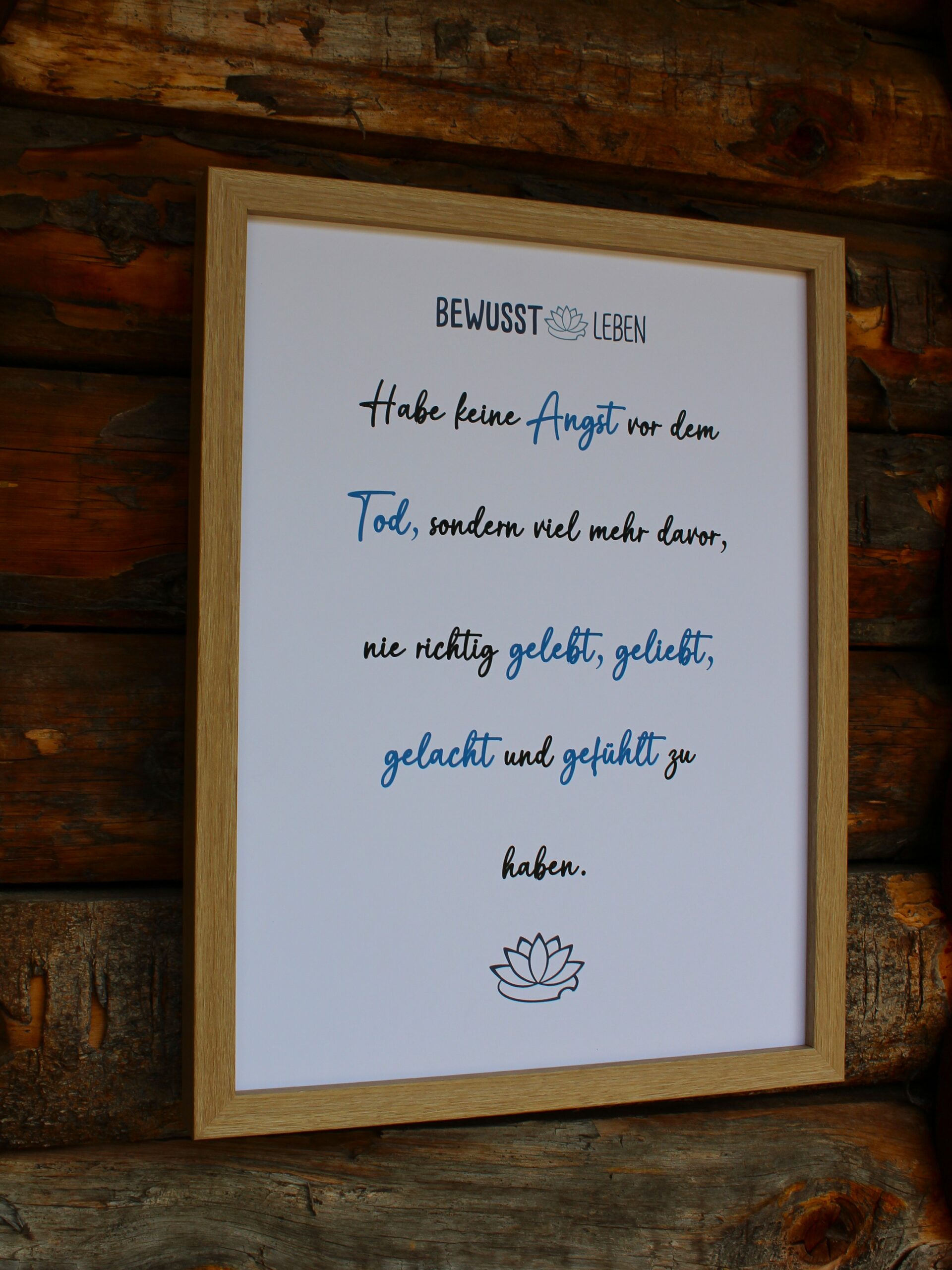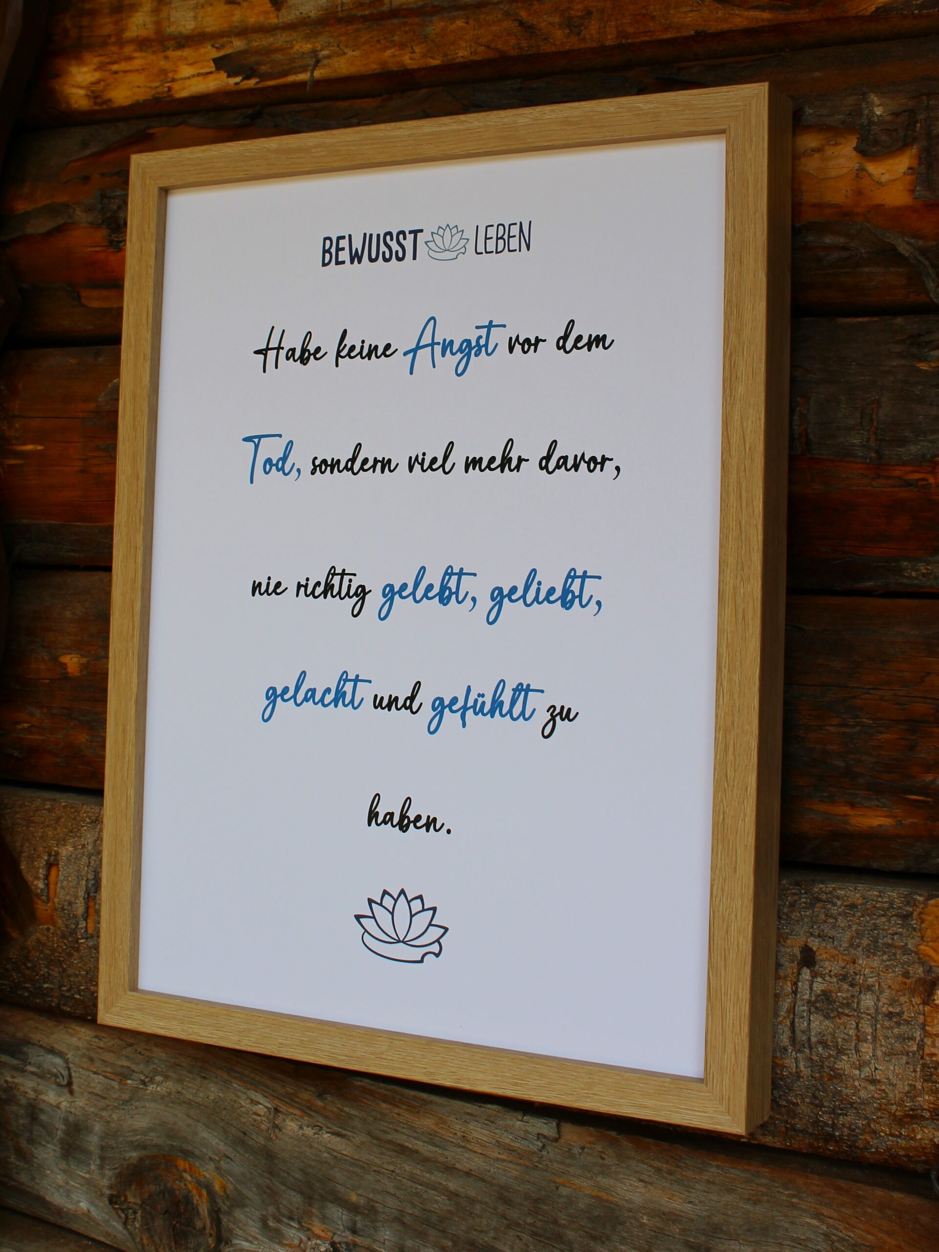 Wenn an deiner Wand noch etwas fehlt, dann ist dieses Poster genau das Richtige. Nachdenkende Sprüche in einem einfachen Design bringen eine zeitlose und ruhige Atmosphäre in dein Zimmer. Falls dein Alltag mal wieder stärker ist und dir deinen Fokus auf deine Träume und auf dein Leben nimmt, dann gibt dir das Poster wieder Kraft und Hoffnung zurück.