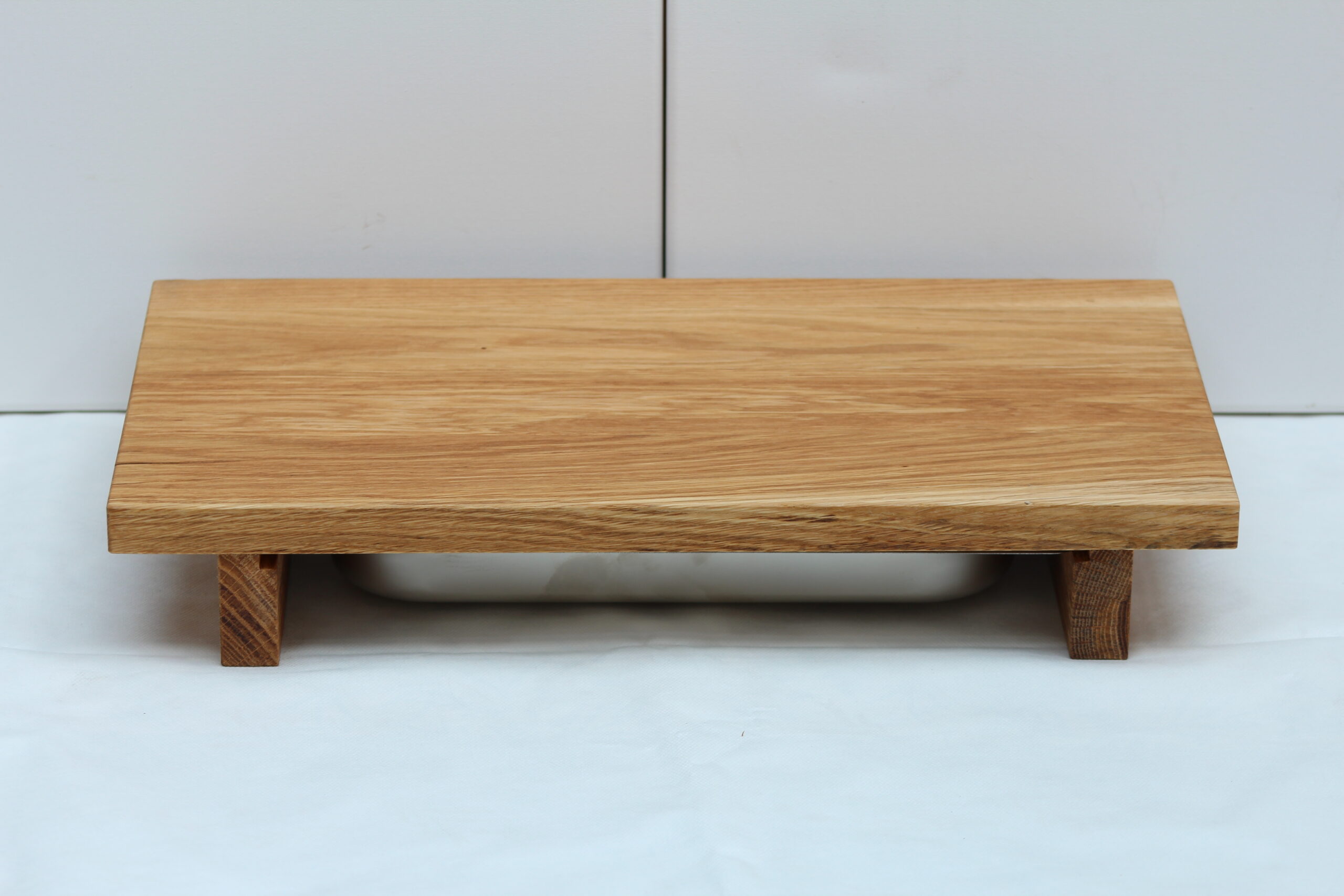 Mit einer Breite von 45 cm, einer Tiefe von 25 cm und einer Höhe von 7 cm, macht das Eichenholz