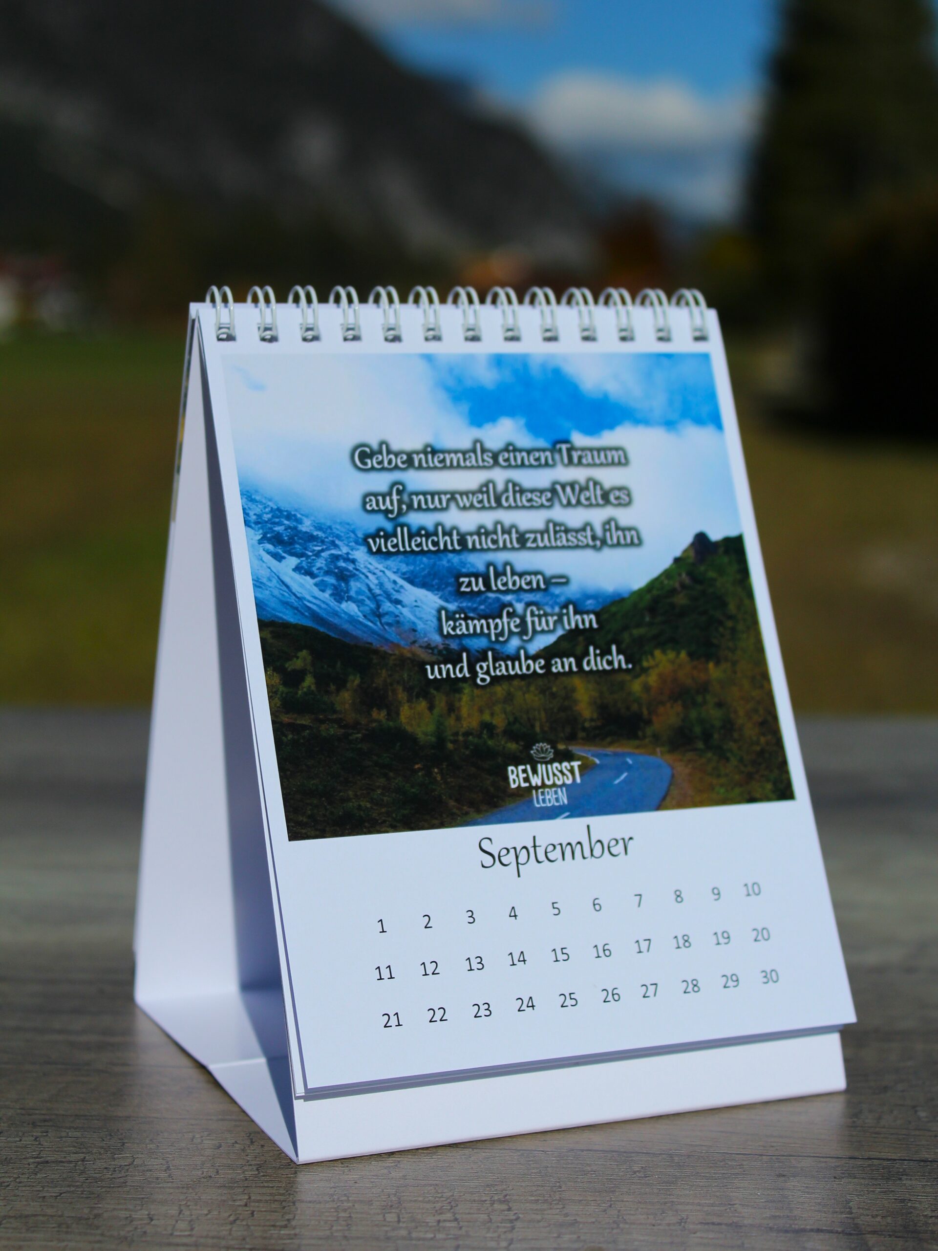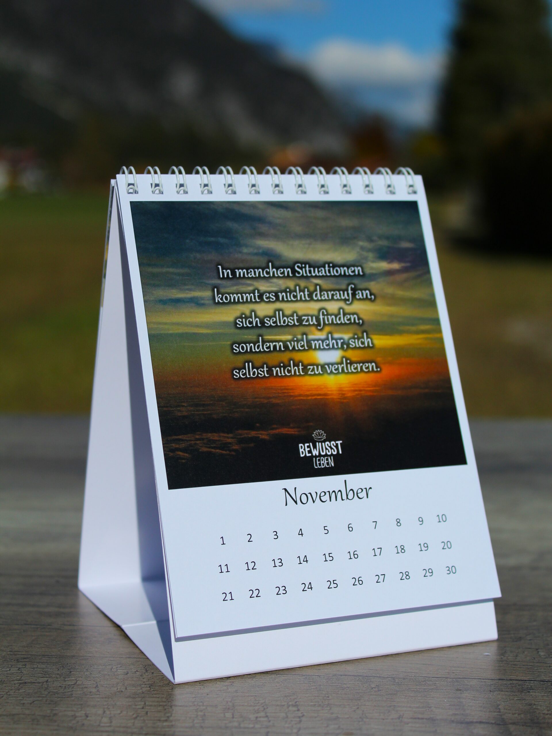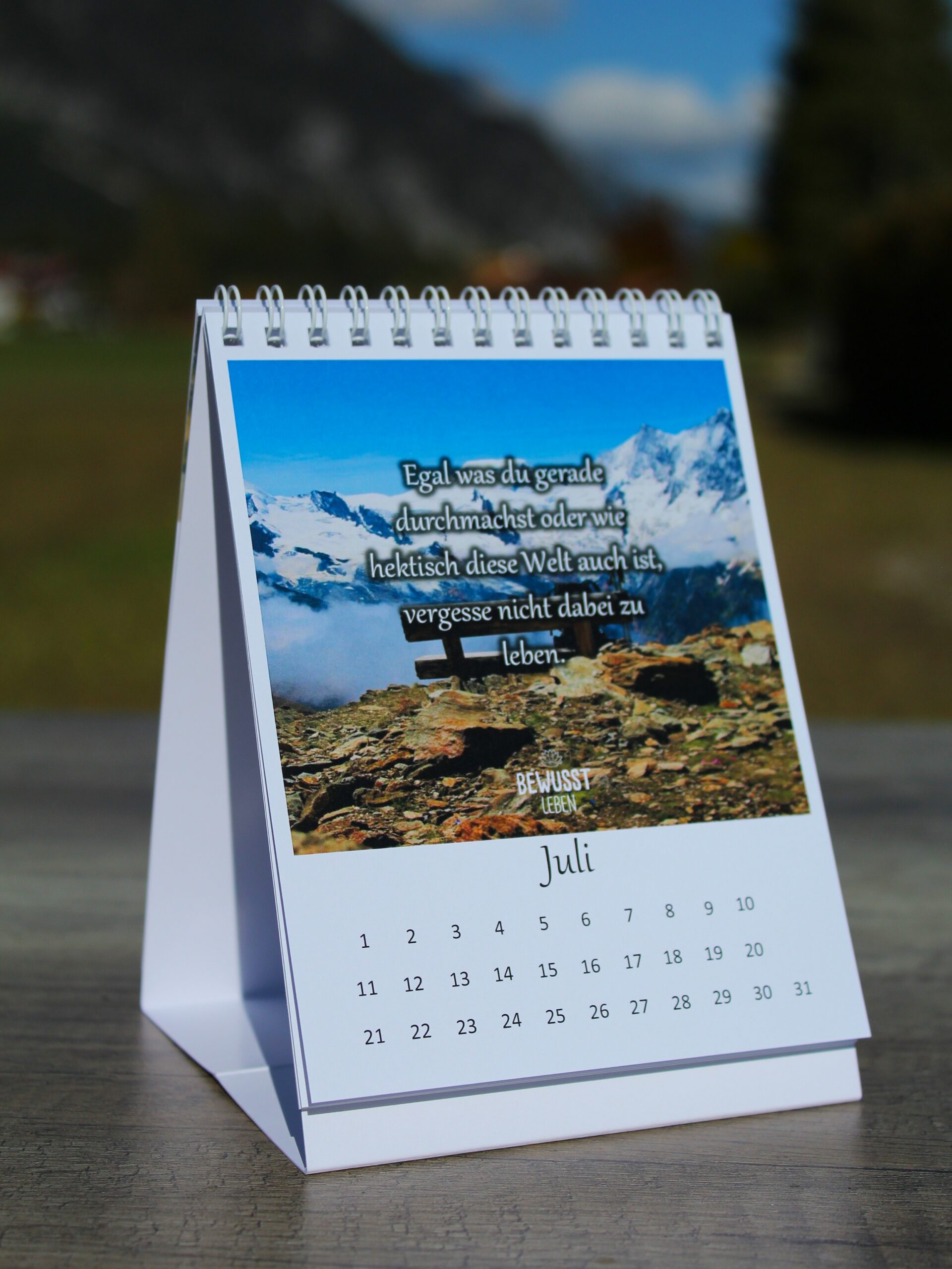 Egal ob im Büro, zu Hause oder als Geschenk – dieser Tischkalender macht nicht nur etwas her, sondern hilft dir auch mit bewussten und nachdenklichen Sprüchen, wieder den Fokus auf das Wichtige zu setzen. Zudem ist dieser Tischkalender etwas Besonderes, denn er hat kein Ablaufdatum. Er ist nicht nur für ein Jahr bestimmt, sondern leistet dir auch noch in Folgejahren weiter seine Dienste.